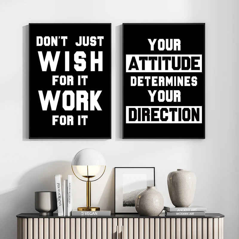 Motivate your mind and elevate your space with these black & white inspirational quote canvas prints — a sleek, modern way to add purpose and personality to any room.