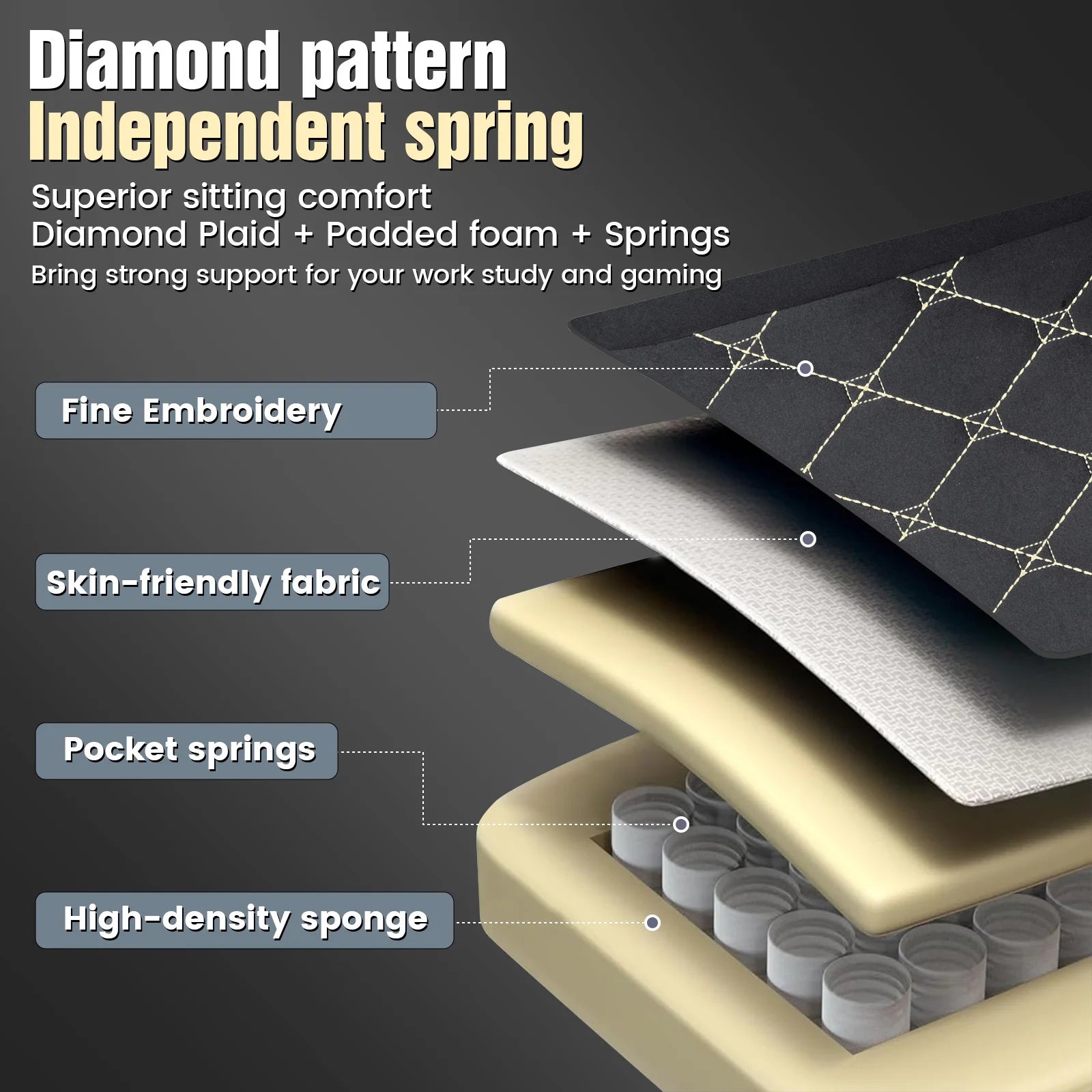 Designed for long gaming sessions and ultimate comfort, the GTPLAYER fabric gaming chair features a pocket spring cushion, adjustable footrest, and ergonomic support — perfect for adult gamers and home office use.